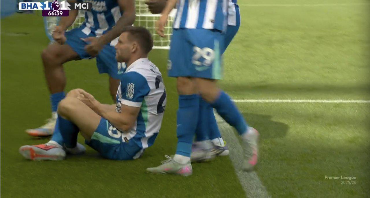 雷速体育8月31日讯 在今日布莱顿对阵曼城的英超第3轮比赛中,老将米尔纳下半场点射建功,随后做出了前队友若塔经典的“打游戏”庆祝动作。